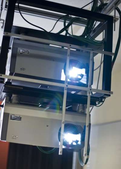 - TRI-SPACE, an immersive VR-display system providing 3 stereoscopic screens using 6 digital JVC D-ILA projectors by 3Dims (see Figure 1)
