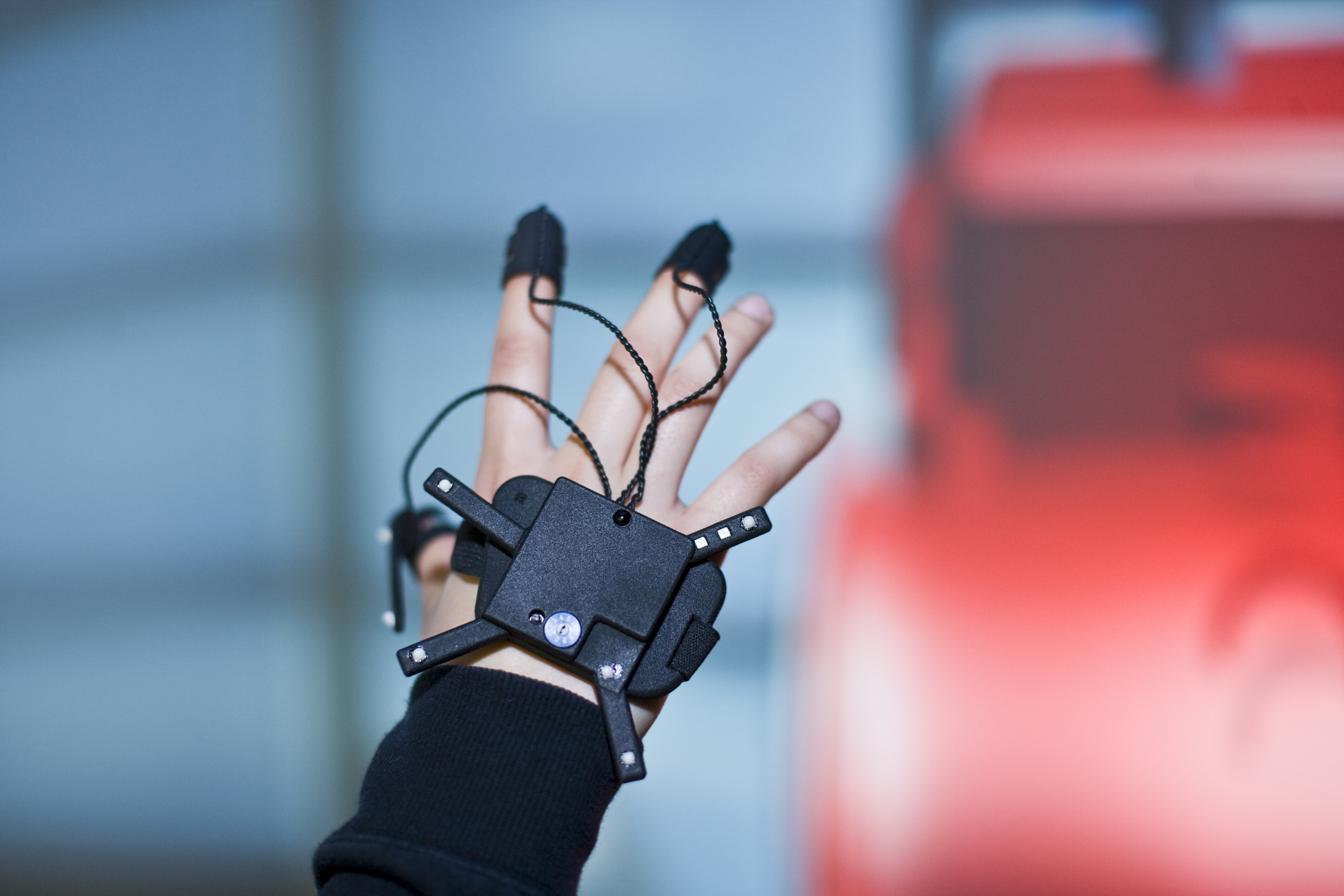 - Two optical (cable-less) 3 finger gloves with tactile feedback (see Figure 3) by ART